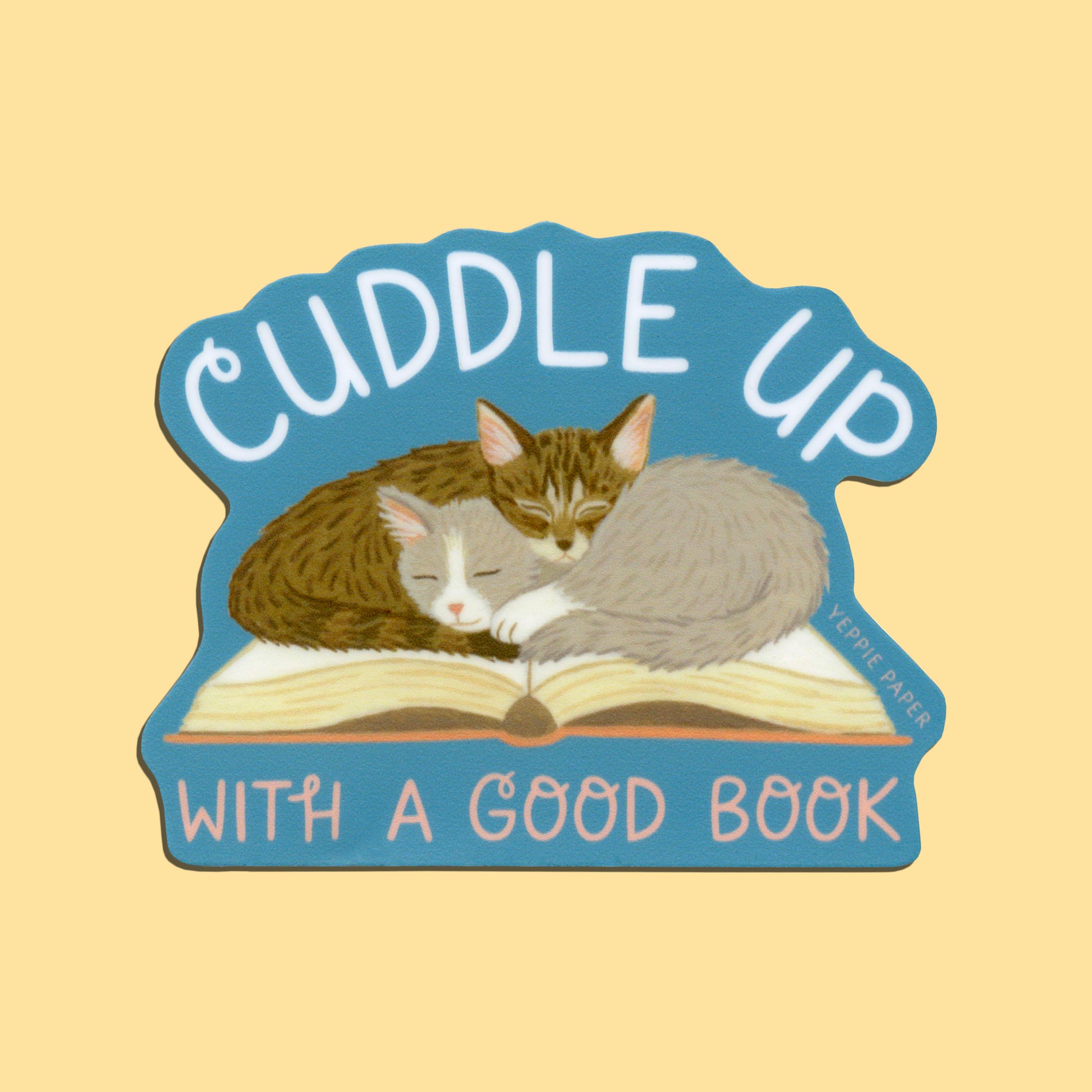 CUDDLY KITTENS ON A BOOK - DIE CUT STICKER