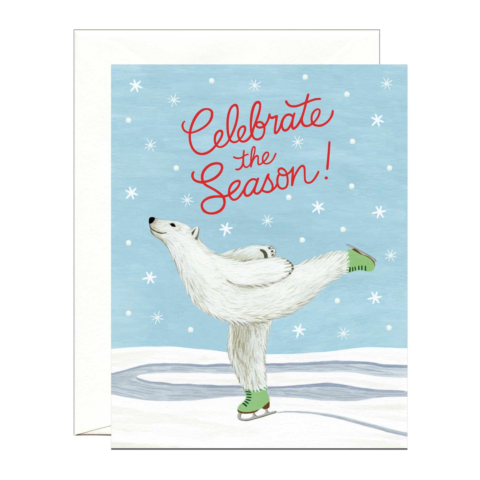 ICE SKATING POLAR BEAR - HOLIDAY GREETING CARDS, BOXED SET OF 8