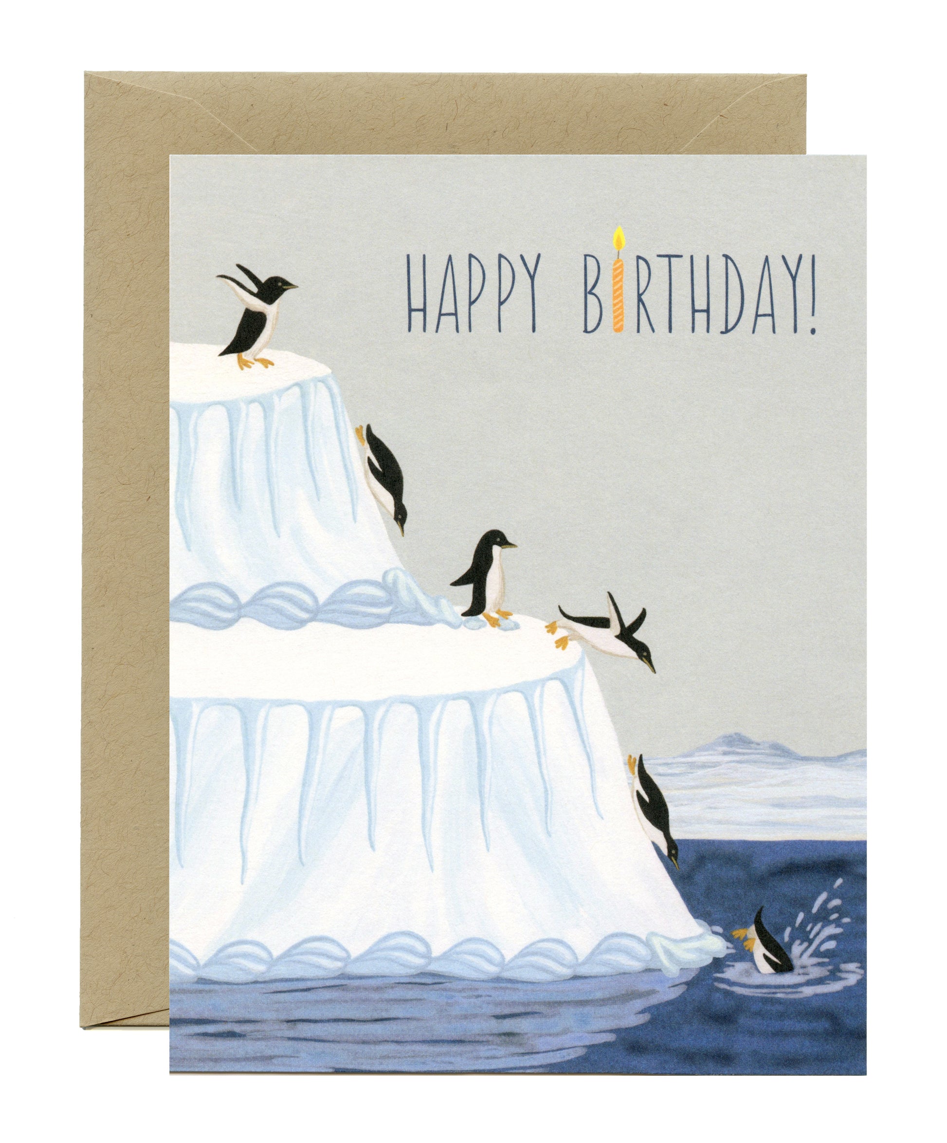 PENGUINS ON AN ICEBERG - BIRTHDAY GREETING CARD