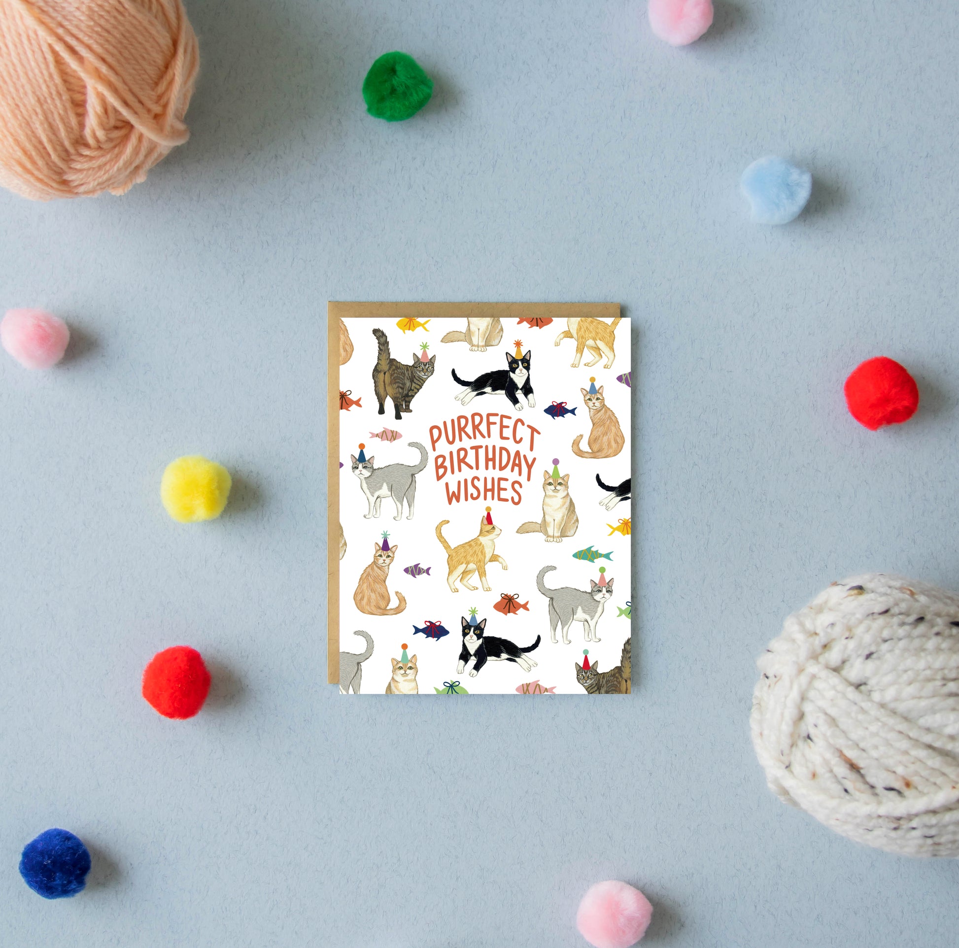 PURRFECT WISHES - BIRTHDAY GREETING CARD