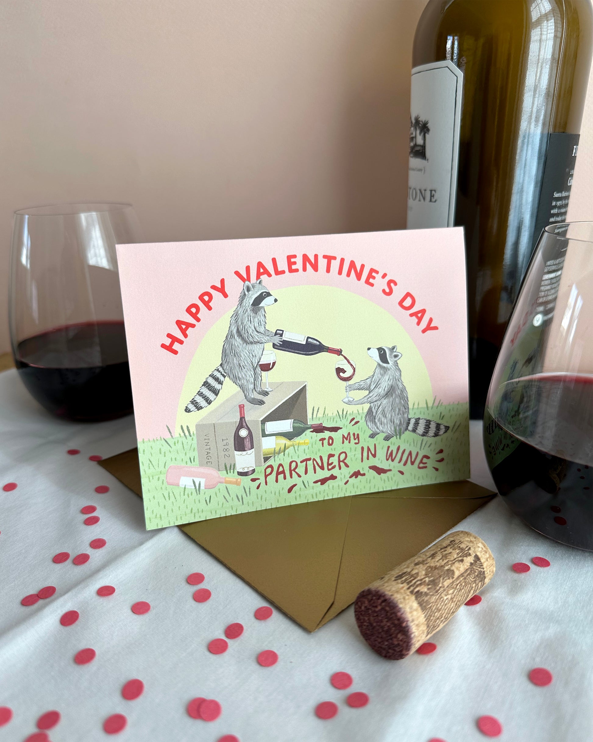 RACCOON PARTNER IN WINE - VALENTINE'S DAY GREETING CARD
