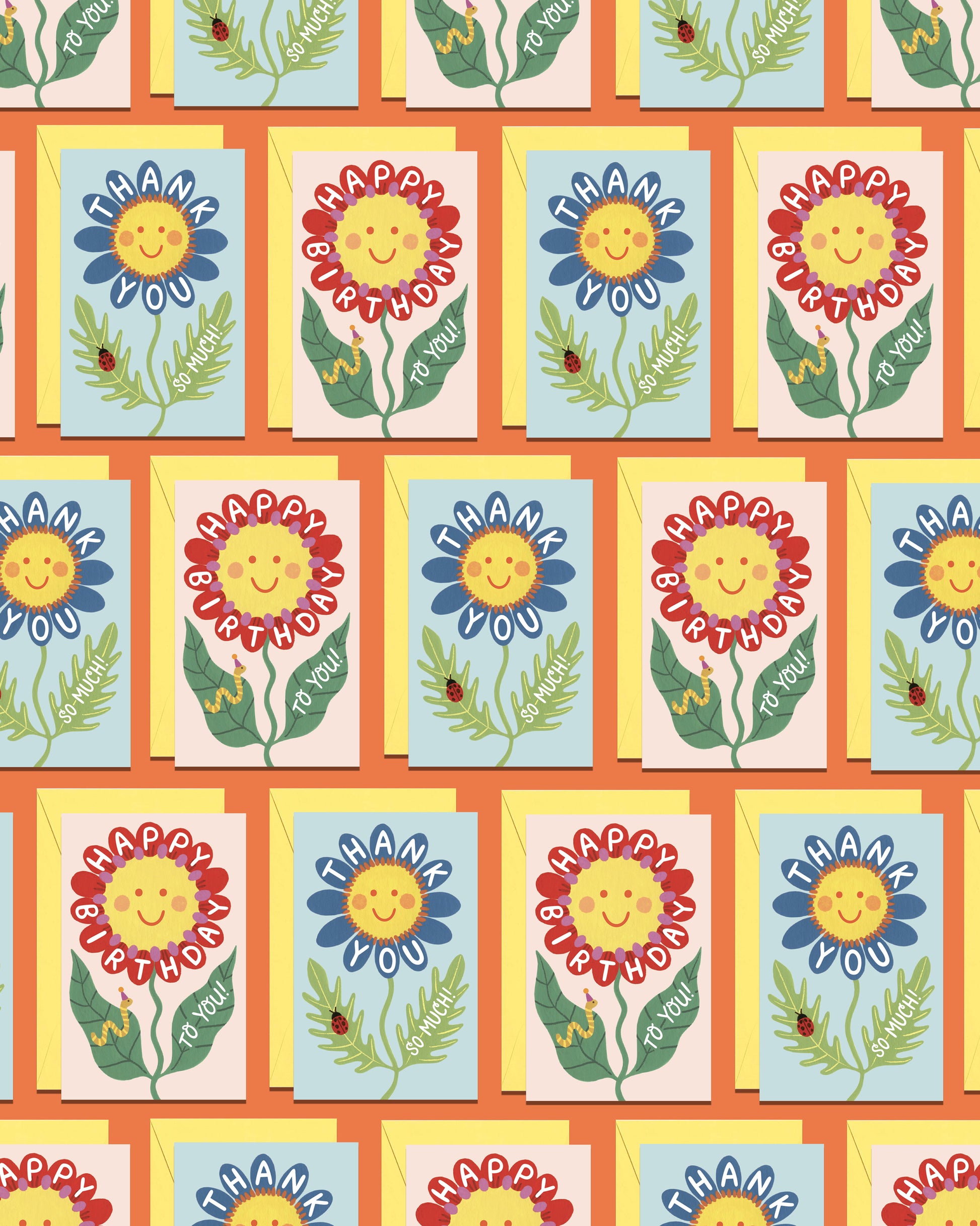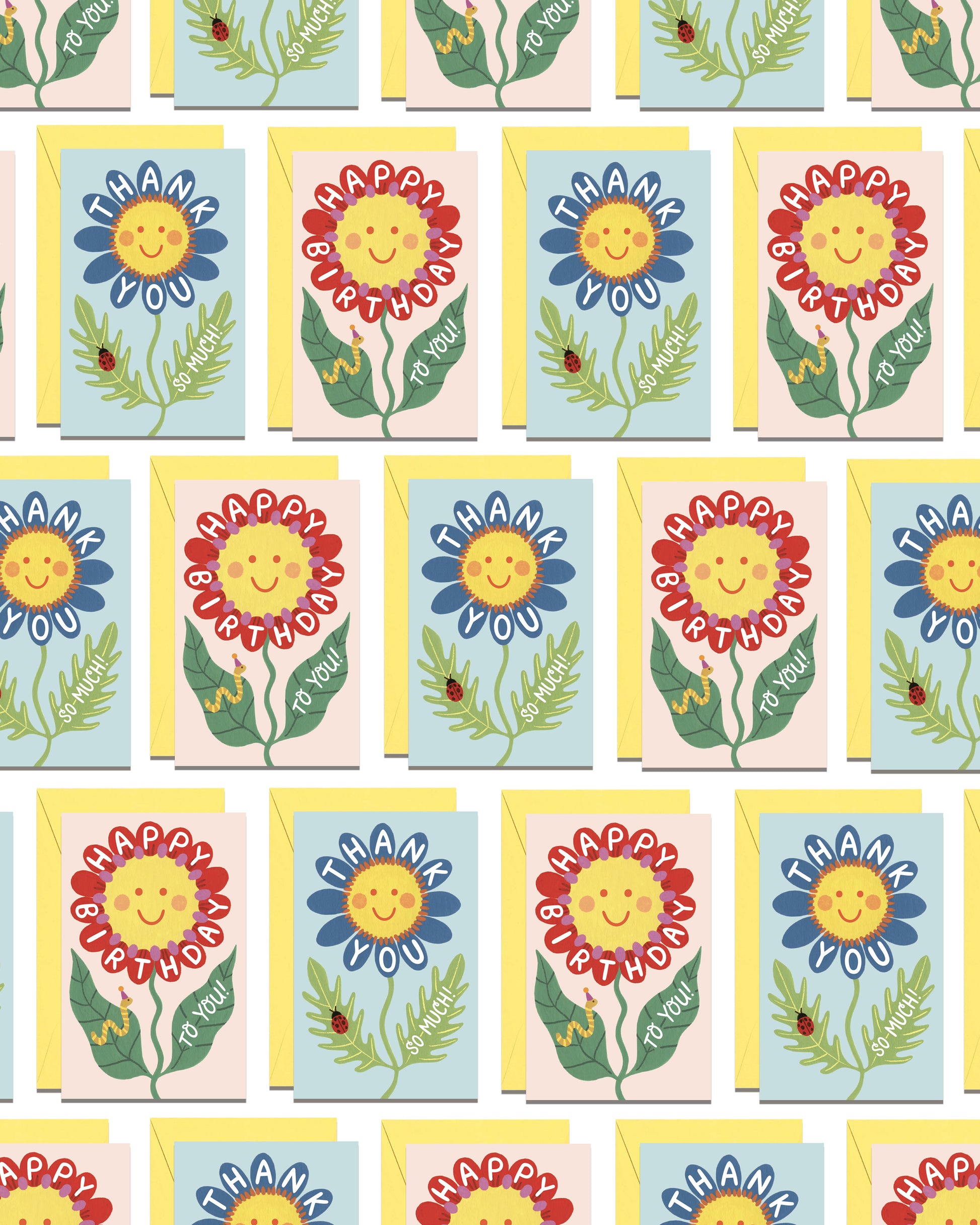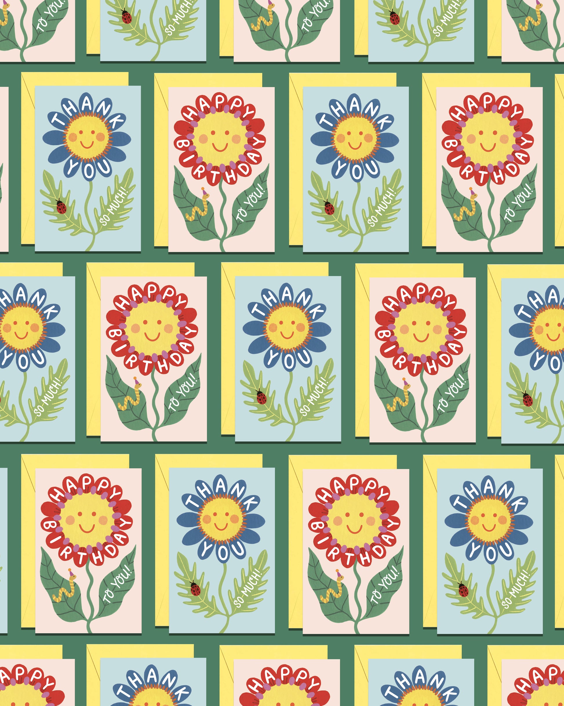 RETRO SMILEY FACE FLOWER - BIRTHDAY MINI CARD