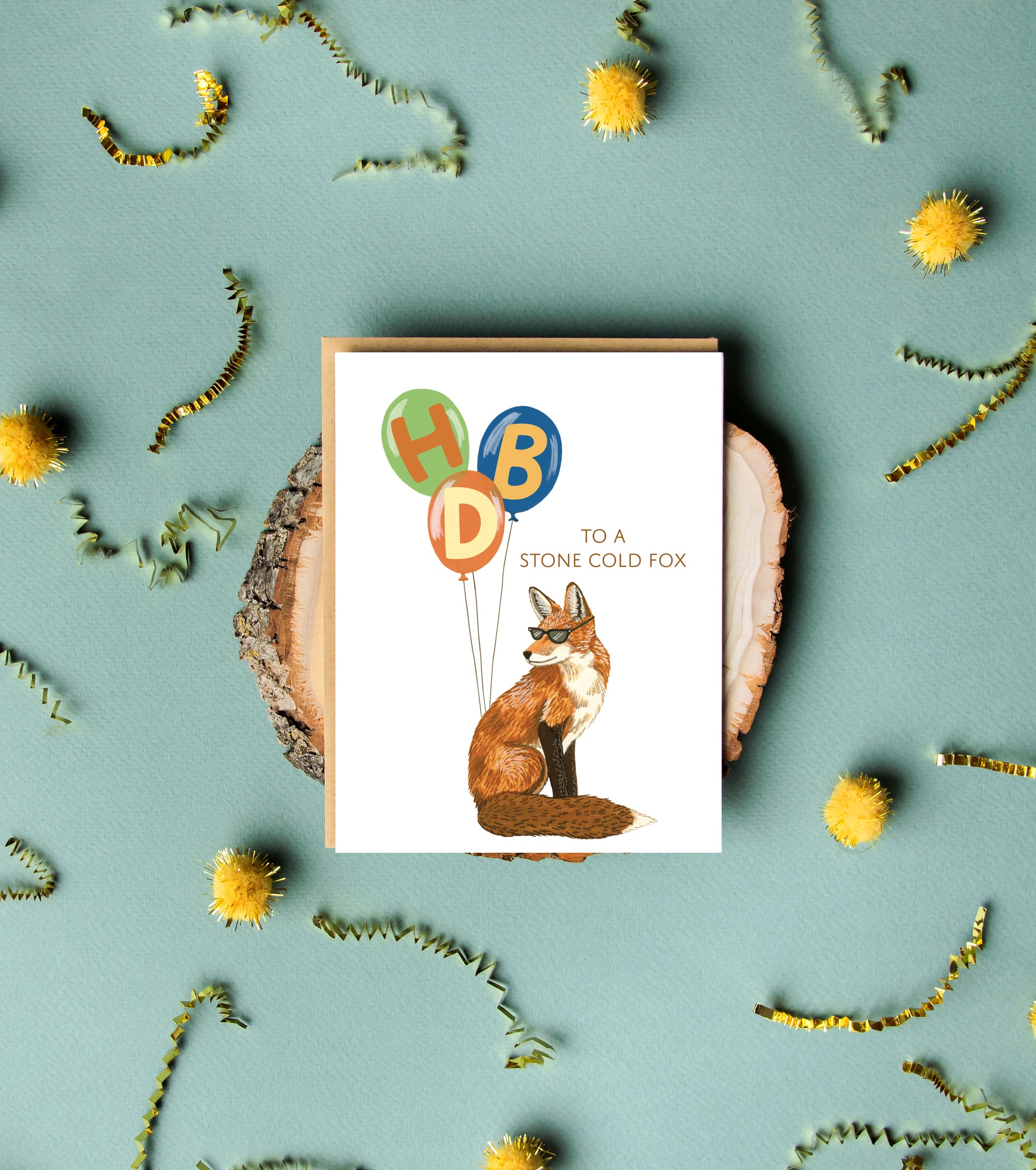 STONE COLD FOX AND BALLOONS - BIRTHDAY GREETING CARD
